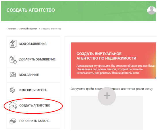 2. В Вашем личном кабинете кликните на "Создать агентство".