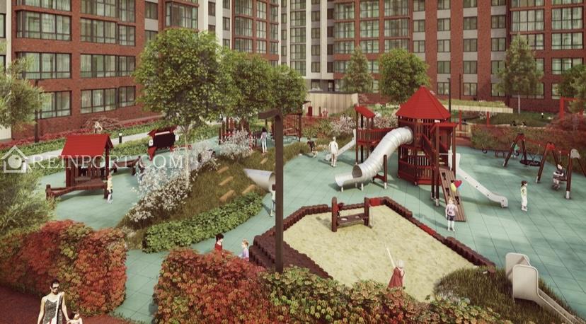 Внутренний двор, закрытый от машин, будет благоустроен в пейзажном стиле. Вместо асфальта здесь появятся газоны с всесезонными растениями и ландшафтные композиции с деревьями и кустарниками. В центре двора — игровые и спортивные площадки с безопасным покрытием и современным оборудованием, а также прогулочные зоны для отдыха с беседками.
