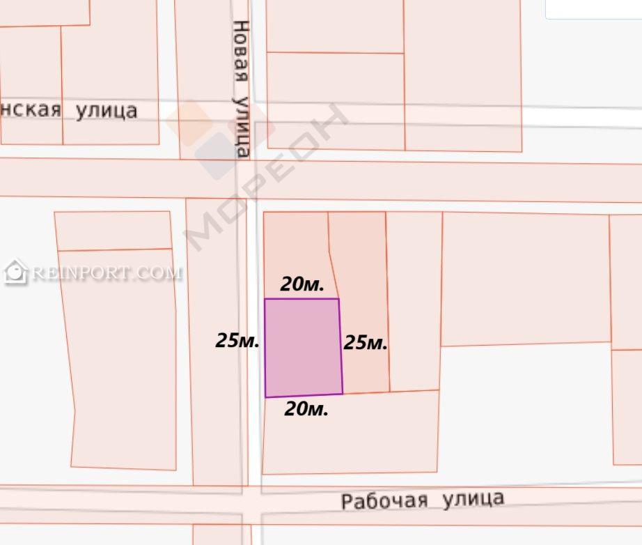 Участок 5 соток, фасад 25, глубина 20 метров. Правильной прямоугольной формы.