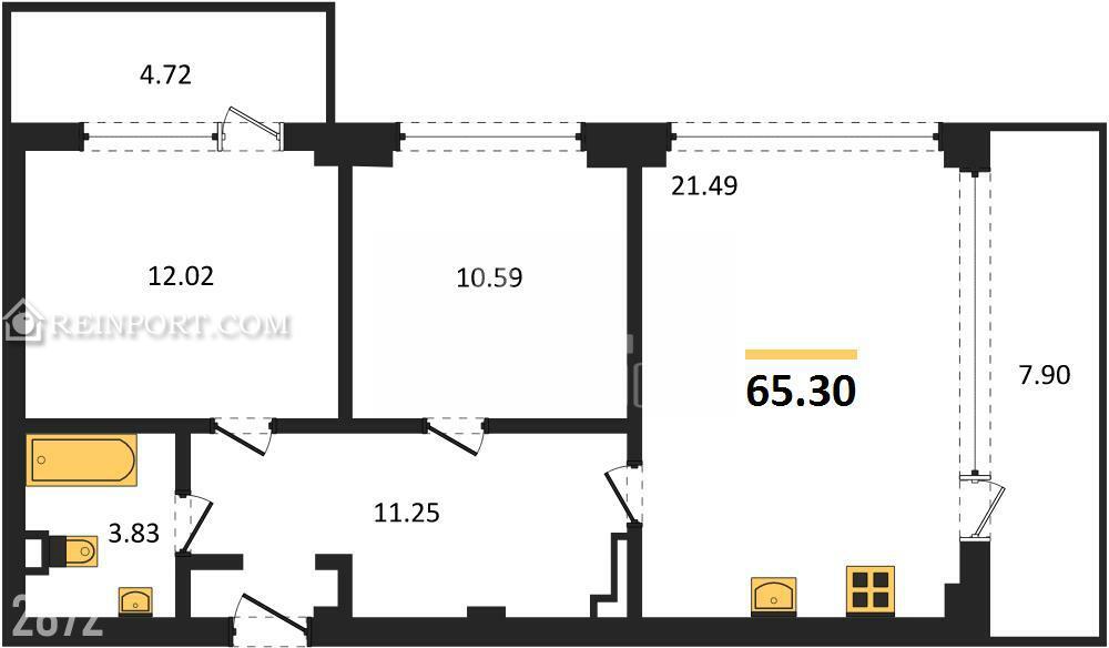 · Общая площадь: 65,3 м2.