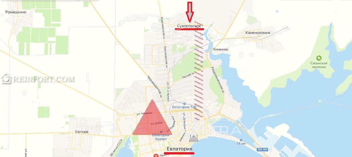 Участок находится в 10 км от моря. Автобусная остановка, магазины, школа, детский сад, амбулатория, аптека в шаговой доступности. Село находится в пригороде Евпатории. Ведется активная застройка поселка. До центра Евпатории 5-7 км, на машине 10 минут, на автобусе 20 минут Район очень спокойный и тихий