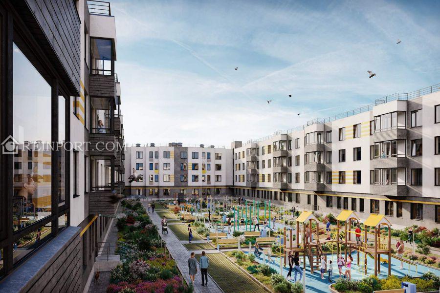 В 10-ти четырехэтажных корпусах сможет поселиться 1171 семья. Дома располагаются блоками, образуя уютные закрытые и безопасные дворы с большим количеством зеленых насаждений и с зонами отдыха для взрослых и детей.