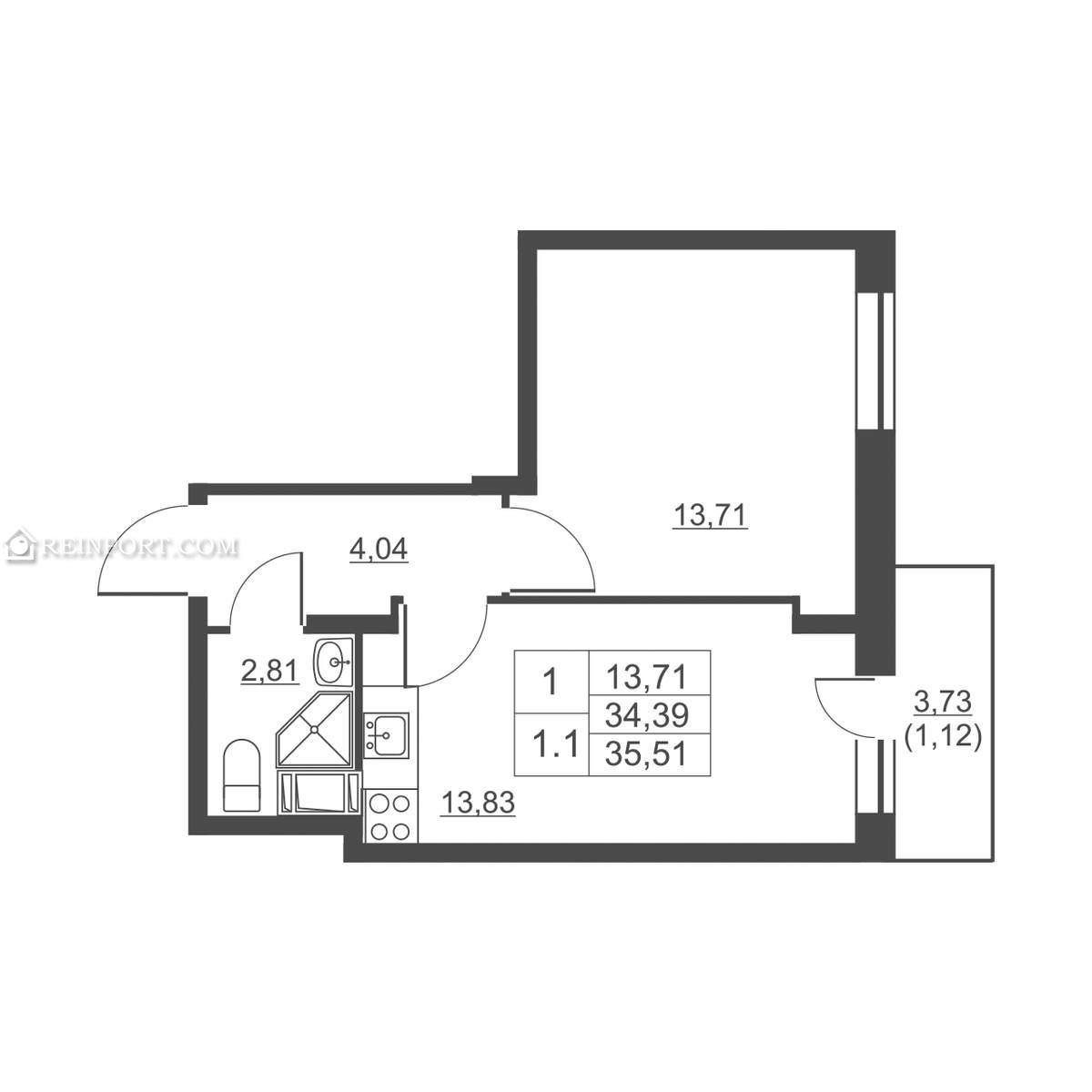 Продается 1-комн. квартира, площадью 35.51 м2.