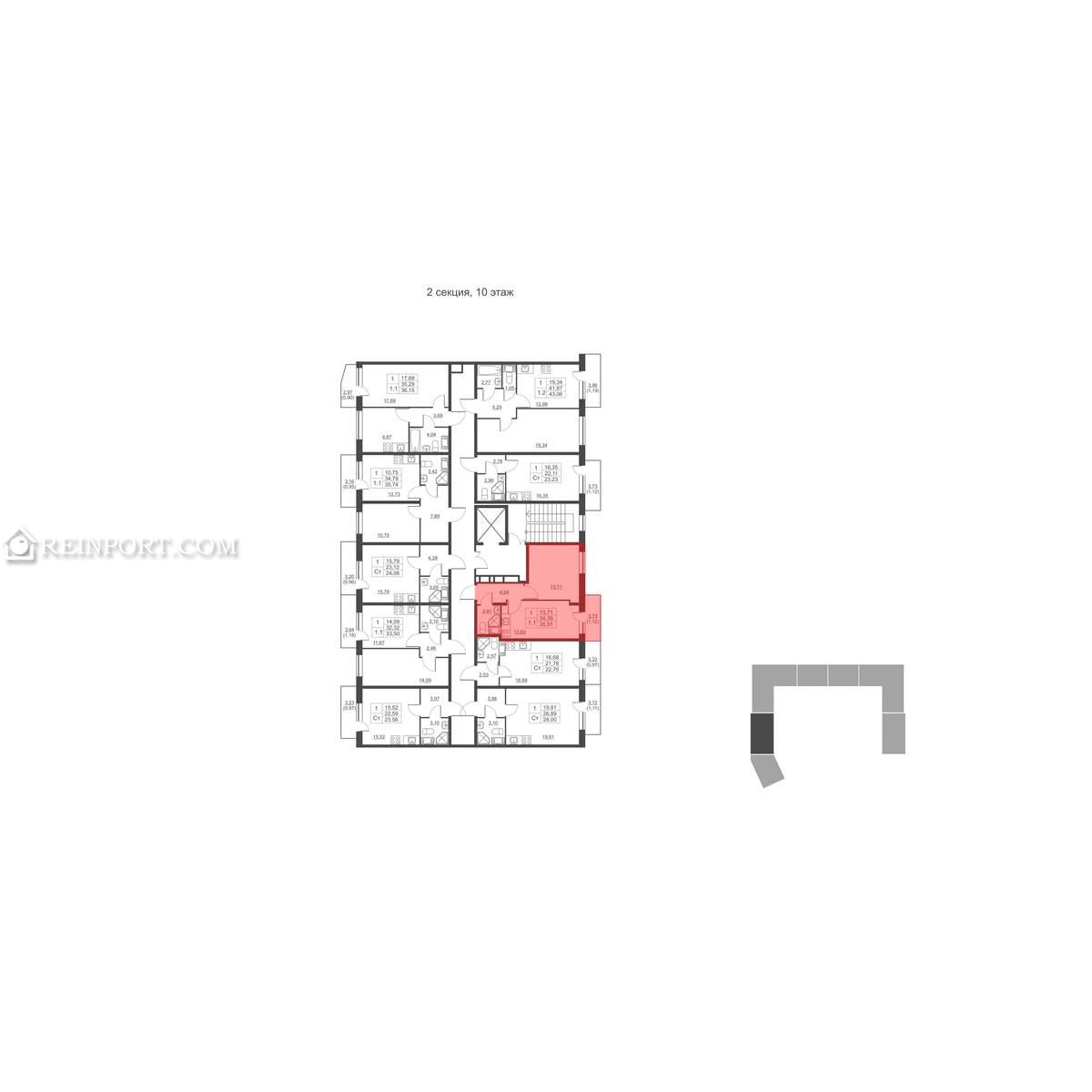 Квартира располагается на 10 этаже 11-этажного монолитного дома.