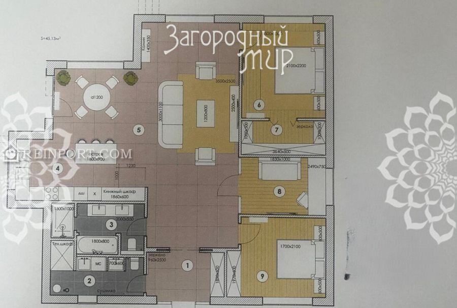 Лот 69243. Лужки. Дом в охраняемом коттеджном поселке "Подмосковные просторы". Кирпичный, одноэтажный дом, внешне оштукатурен и покрашен.
