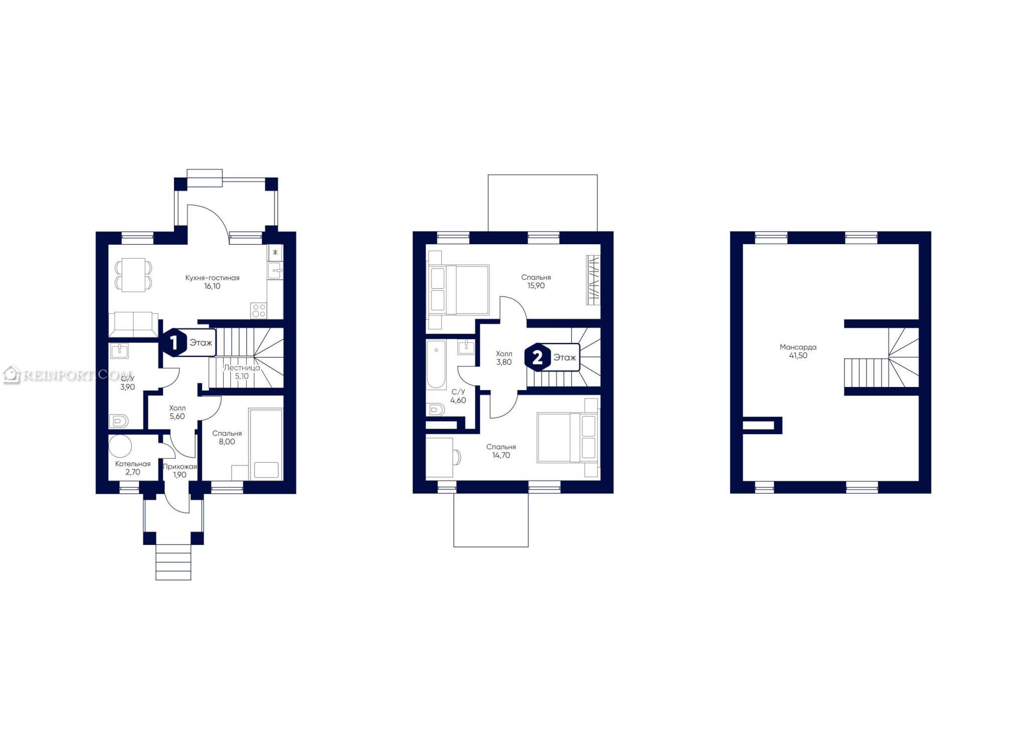 - Мансарда: 41.5 м