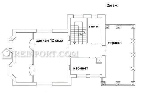 Площадь 2-го этажа: общая - 114 кв.м, жилая - 55 кв.м. Полноценный второй этаж, с высокими потолками. Здесь расположены: детская (42 кв.м) с двумя большими окнами (можно разделить на две комнаты), кабинет (12 кв.м), ванная (8 кв.м), терраса - 39 кв.м.