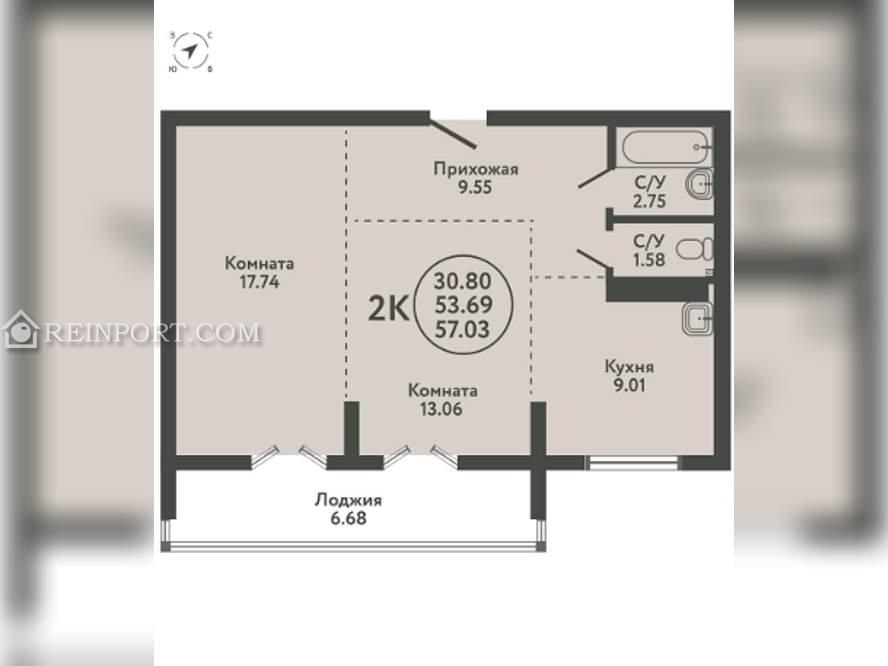 Продается 2-комн. квартира, площадью 57.03 кв.м.