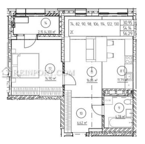 ✅В продаже двухкомнатная квapтиpa, S - 56,29 м.кв.