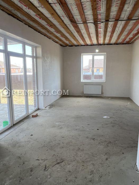 В доме: просторный коридор, две спальни, гостиная-кухня, гардеробная, общий санузел и санузел в спальне, терраса, панорамные окна в спальнях и гостиной.