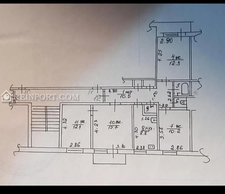 Продается 4-к. квартира, общей площадью 76,2 кв.м., кухня 9 кв.м.