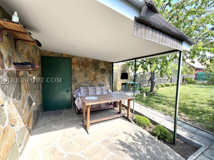 Электричество есть. Газ по границе участка. Дом двухэтажный, построен из кирпича. Пристроена летняя кухня. Есть мангальная зона под навесом. Дом частично меблирован.
