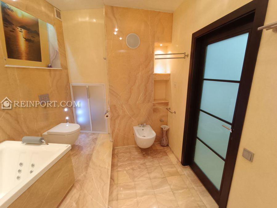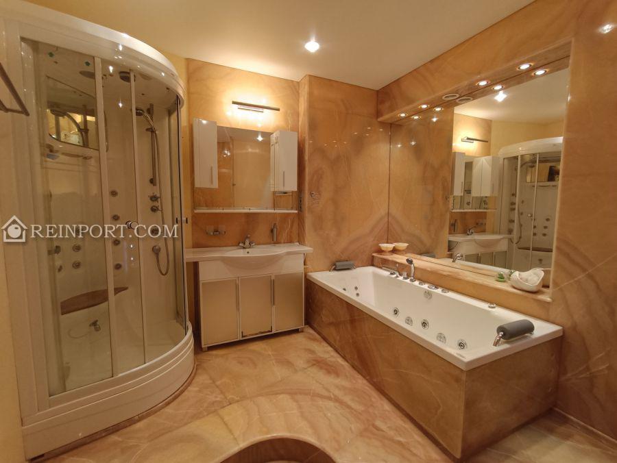В квартирі виконаний ремонт з використанням якісних матеріалів. Санвузол повністю виконаний з натурального оніксу, встановлена шведська сантехніка, ванна з гідромасажем, духова кабіна з масажем та парилкою. Гостьовий санвузол в кахлі. В житлових кімнатах підлога виконана з бамбукової паркетної дошки, а в передпокої з натурального каменю. Кожна кімната обладнана окремими гардеробами. Доволі вмістка пральна кімната з місцем для зберігання всього необхідного. По всій квартирі встановлені кондиціонери Daikin. Квартира обладнана меблями та технікою.